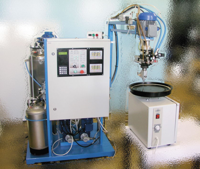 Залівальна-змешвальная ўстаноўка нізкага ціску прызначаная для герметызацыі электравырабаў палімернымі кампаўндамі (вытворчасць літай ізаляцыі).