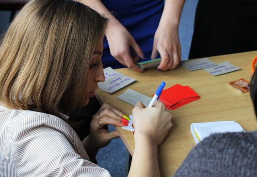 Блiжэй да абеду выкладчыкi раскрывалi свае сакрэты па-беларуску. Намеснiк дэкана Ганна Курэйчык распавядала пра экзатычныя вандроўкі, а дэкан Сяргей Дубовiк падзялiўся ўспамiнамi пра вайну ў Афганiстане.