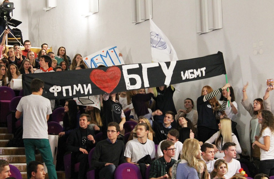 Велізарныя плакаты, сцяжкі, літары, і ўсё гэта было запраўлена гучнымі апладысментамі і крыкам. Арганізатары конкурсу вырашылі не пакідаць без увагі такую падрыхтоўку заўзятараў, і ў намінацыі “Найлепшая група падтрымкі” перамаглі Інстытут бізнесу і менеджменту тэхналогій і факультэт прыкладной матэматыкі і інфарматыкі.