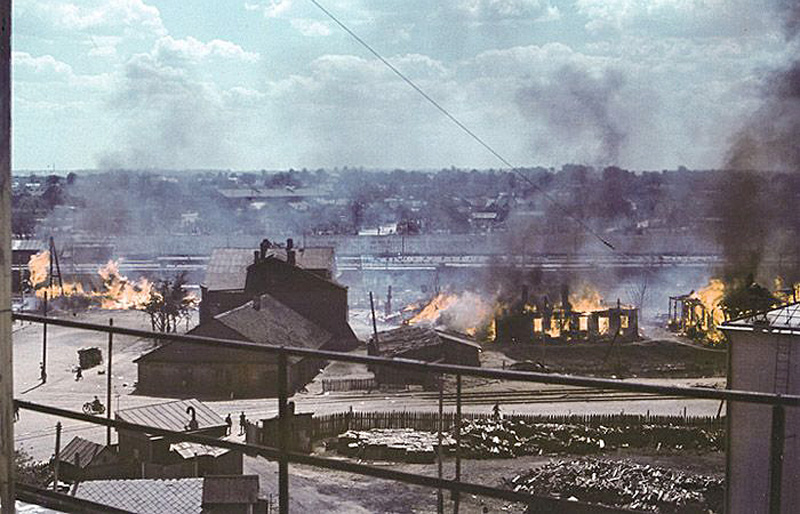 Ужо 24 чэрвеня 1941 г. Мінск уяўляў сабою велізарную паходню. Горад на тры чвэрці быў знішчаны, ацалелі толькі драўляныя ўскраіны, увесь жа цэнтр разбураны.