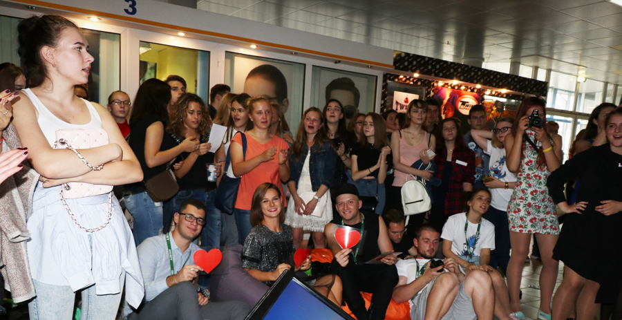 А пакуль яшчэ “зялёныя” студэнты чакалі чагосьці невядомага і дзівоснага, усярэдзіне ўжо панаваў хаос і ўсе яго вытворныя. І калі атрымлівалася патрапіць у хол, цябе сустракалі літаральна гарачыя абдымкі людской плыні. Нават расчыненыя насцеж дзверы не ратавалі ад спякоты, а актывісты прафкама падлівалі смалы ў агонь. У новым яркім спартыўным рэтра-вобразе яны практыкаваліся ў гімнастыцы, аэробіцы, круцілі хулахупы, скакалі на скакалцы, паднімалі гантэлі і заклікалі першакурснікаў быць у форме разам з імі.