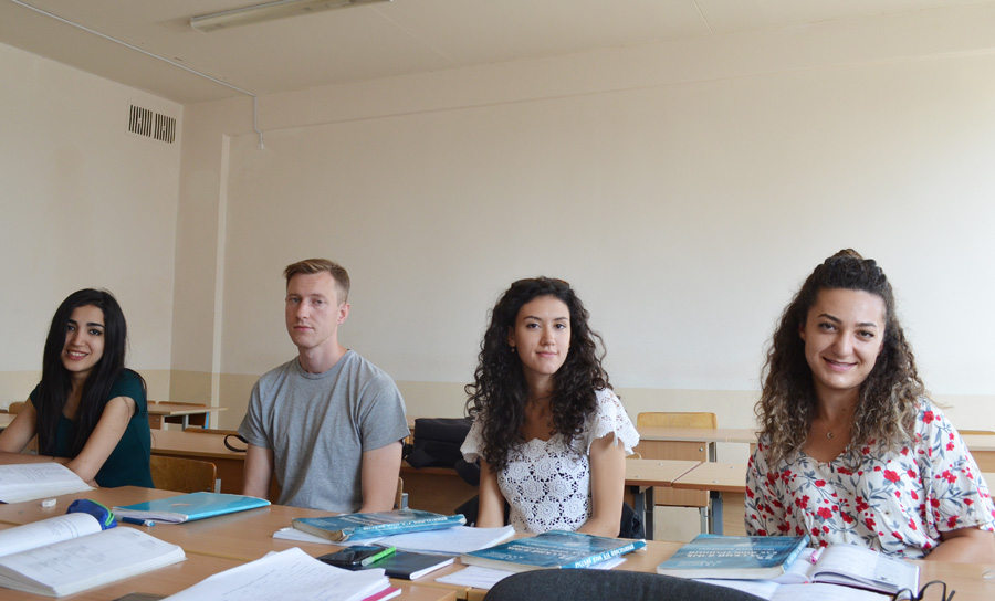 Ежегодно растет интерес к русскому языку со стороны европейцев. Слушатели Летней школы: Милана (Азербайджан), Пребен (Норвегия), Маргерита (Италия), Хазал (Турция)