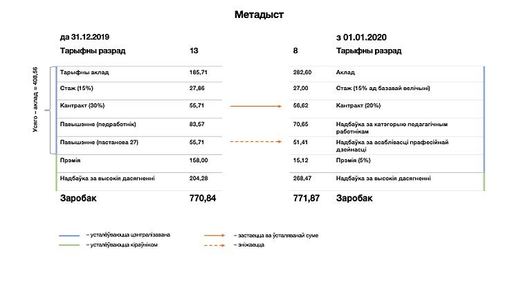 Надбаўка за кантракт захавана ў сумарным выражэнні, але змянілася ў працэнтным.