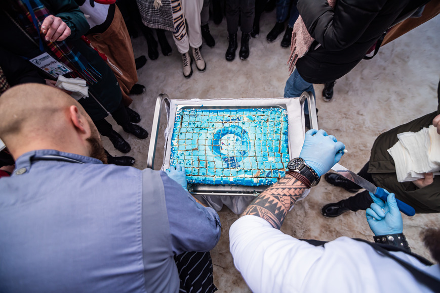 Некоторые участники после длительных лыжных гонок немного подустали, но поднять им настроение оказалось минутным делом. Что нужно после длительных занятий спортом? Конечно же, подкрепиться чем-нибудь сладким! Праздничный торт для такой оригинальной компании не мог быть обычным. Двадцатикилограммовый десерт декорировали специально к вековому юбилею университета.